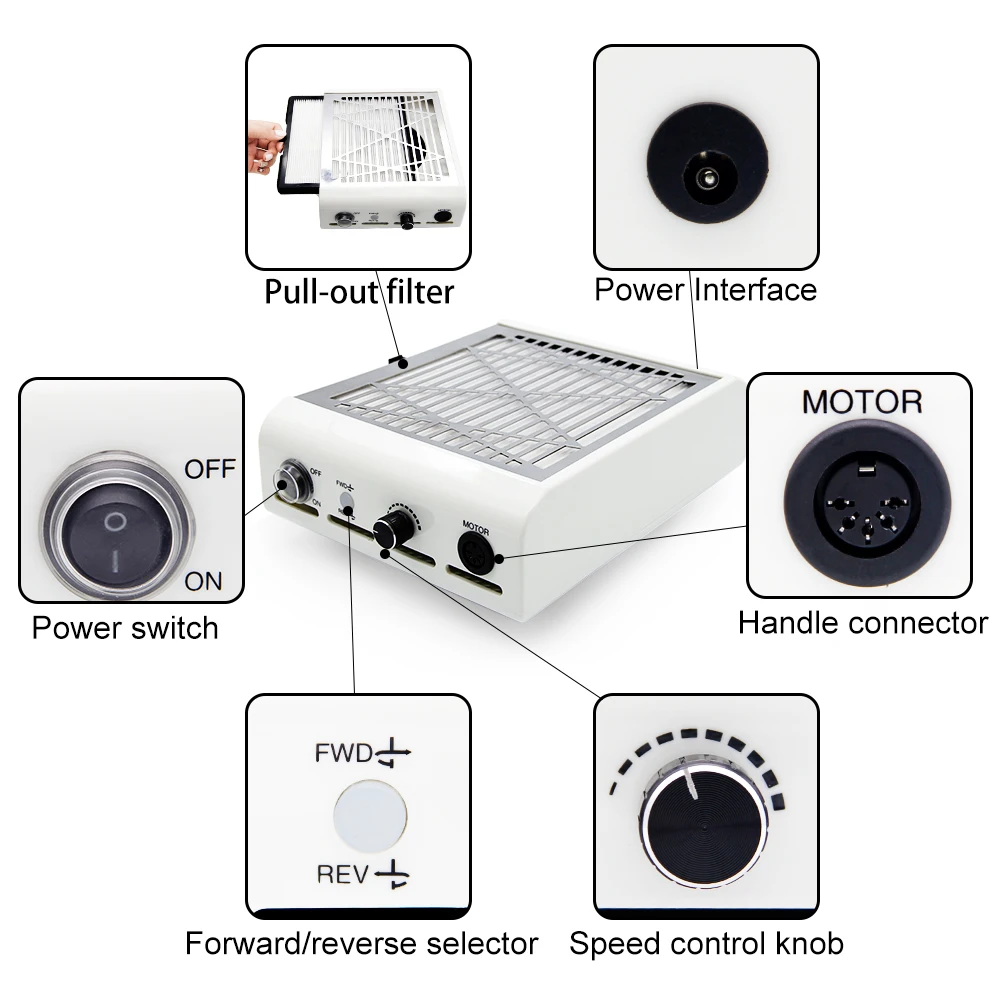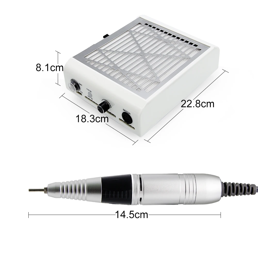 60W 2 in 1 Nail Drill 35000 RPM with Nail Dust Collector Vacuum Cleaner Nail Art Manicure Machine f