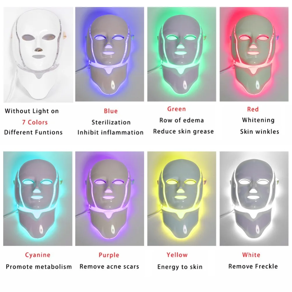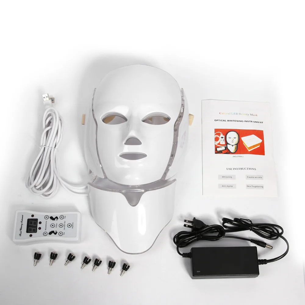 7 Colors Light LED Facial Mask With Neck Skin Rejuvenation Face Care Treatment Beauty Anti Acne Wri