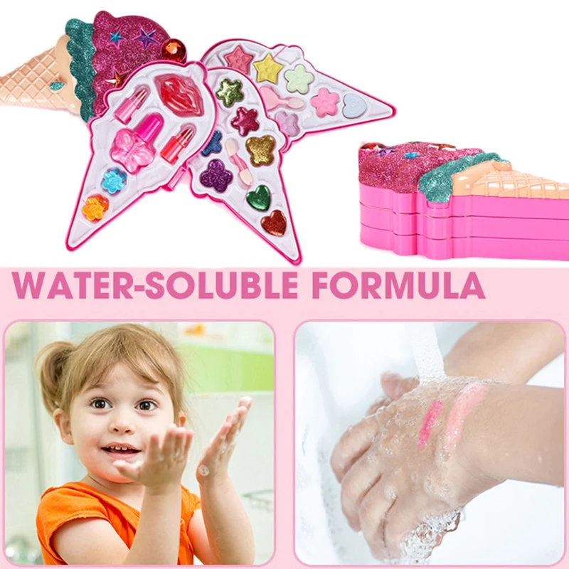 FashionGirls Makeup Set and Cosmetic Set Ice Cream Cartoon Fold Out Makeup Palette Makeup Kit Toy f