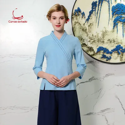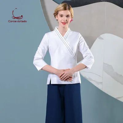 SPA technician health club spring and summer work clothes set cotton and linen beauty salon plastic