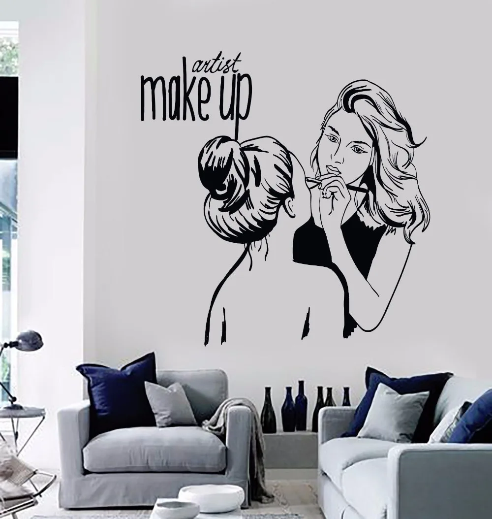 Vinyl Wall Decal Make Up Artist Wall Sticker Cosmetic Beauty Salon Decor Wall Mural Removable Make